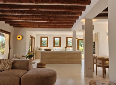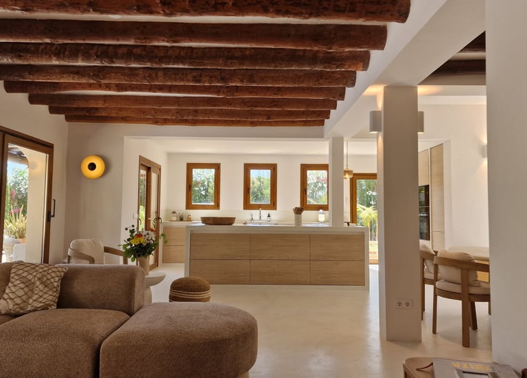Interiorismo en Ibiza pensado desde la calma, donde la luz, los materiales y los detalles crean espacios para vivir sin prisa.